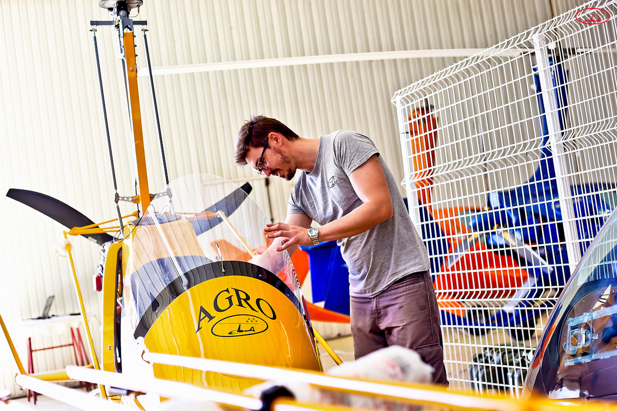 ELA decides to start serial production of the ELA-07, with Rotax engines, and starts the homologation process in Spain and Germany. The ELA-07 is selling at a good pace and for the first time, ELA Aviación has become a company with a great projection, competing with the best gyrocopters manufacturers in the world. Due to the great international demand, ELA moved to Fuente Obejuna (Córdoba) in 2005, to operate with total freedom in its aerodrome and builds a modern factory. During all these years, ELA has built 4 fully-enclosed gyrocopters that do not meet the company’s flight stability standards. It was not until 2014, when Emilio J. and Daniel developed ELA 10-Eclipse. A fully-enclosed tandem, which will be the best gyrocopter manufactured by ELA to date.