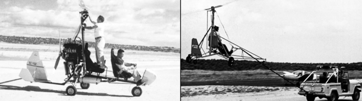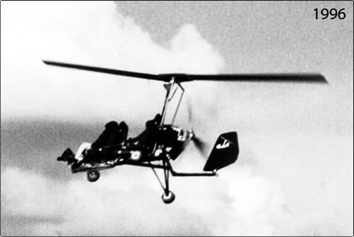 In the early ’90s, Emilio begins to explore the idea of developing an autogyro, a Spanish invention by D. Juan de la Cierva, and starts manufacturing his first model. It is a motorless prototype that, towed by a car, can lift a few meters off the ground. This allows him to research and learn to fly in an autogyro since there were no schools or documentation about them at that time.